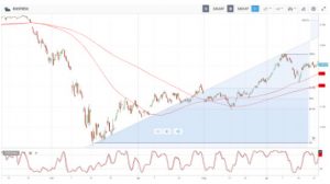 Due onde verso l’alto, approssimativamente della stessa dimensione, due correzioni, entrambe sulla proporzione di Fibonacci 0,50: abbiamo uno schema! Ci sono buone probabilità che il trend rialzista continui!