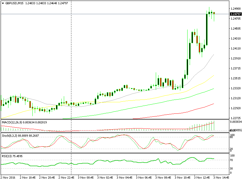 Nel frattempo, le coppie GBP stanno ricevendo un’altra spinta. Il GBP non si è mosso di un solo pips quando i numeri positivi del PMI dei servizi inglesi sono stati rilasciati, quindi abbiamo immaginato che il mercato forex avesse già tenuto in considerazione lo stallo della BOE. Ma guardando al grafico GBP/USD, possiamo vedere che questa coppia è salita di circa 100 pips per la seconda volta oggi. Forse qualche forex trader testardo ha pensato che la BOE potesse allentare di nuovo la politica, nonostante i dati economici positivi dal Regno Unito Forse la decisione dell’Alta Corte ha esaltato qualche altro forex trader.