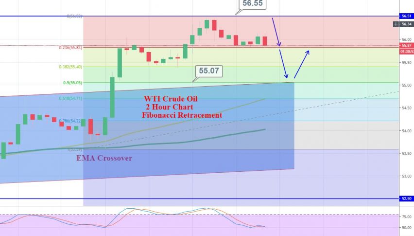 Nell’arco di 2 ore, il greggio è entrato nella zona di ipercomprato, suggerendo una possibilità di ritracciamento ribassista. Il greggio WTI sta affrontando una resistenza immediata nell’area di 56.55 insieme a un livello di supporto immediato di 55,85.